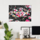 Black White Rosa Blomsterträdgård Monochrome Poster