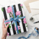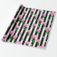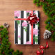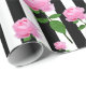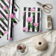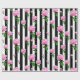 Svartvit rand med rosa ros blomsterretro vintage inspirerade mönster att slå in pappert
