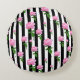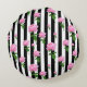 Black White Rosa ros Flower Rand Linjer Rund Kudde