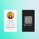 Det moderna svarta och vita affärskortet med social-medieikoner för en skapare av innehåll eller en påverkare som har en skannerbar QR-kod på baksidan, och på framsidan finns profilen bild, kontoreferens, beskrivning och utrymme för att lägga till e-post, webbplats eller anpassningsbar som du behöver. Ta bort eller lägg till medieikoner från social eller anpassa dem genom att klicka på knappen för att redigera designen.