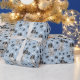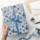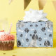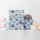 En bild av en vacker svart och vit Springer-spanjor-hund finns i mönster på tillfällens gåva som är papper. Hund sitter mitt i mönster på svart tass avtryck och vitt ben och upprepas med ljusblå bakgrund.