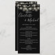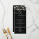 Elegantens svarta och vita bröllop-menykort med söt sträng ljus och namnteckning stil namn. Det här moderna menykortet kan vara personlig med din chic i vitt brev. Designad av Thisisnotme©