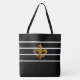BLACK & WHITE STRIPED FLEUR DE LIS DESIGN TOTE BAG