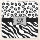 Black White Zebra Leopard Skin Monogram Underlägg Papper Kvadrat