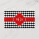 Black Wht Houndstooth Red Quatrefoil 3 Monogram Visitkort