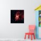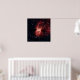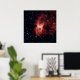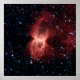 Utrymmesscape poster med Black Widow Nebula i rött mot en mörk fält av stjärnor.