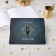 Black wolfs head med piercing blue ögon, gästböcker