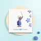 Enkelblå blommigt, 80:e födelsedagsfesten blöjor med en illustration av en svart kvinna som håller en käpp av trä. Illustrerad och designad av Patricia Alvarez.