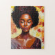 Den här unika akryliska målningsbilden har en vacker svart kvinna på en höstscen med fallande löv. Hon har afro-texturerat naturligt hår med röda högdagrar, och hennes ögon är försluten i ett gott uttryck. Melaninskönhet med höstestetik! Den här biet-konsten med varm färgad har ett mycket texturerat penseldrag.