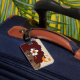Den här bagagemärkningen har en naturskönhet med rödaforött, halshuggna halsband och guld ringar på en beige bakgrund med ditt första på framsidan. Säkra resor!