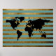 black worldmap with stripes poster