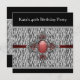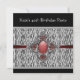 Kvinans elegant svart och vit zebra tryck med rött och silver juvel i centrum 40 födelsedagsfest inbjudan.