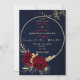 elegantens lyxblommor med vissa guld-löv på guld-krans mot marinens blåa bakgrundsinbjudan bröllopsinbjudan glitter-detaljerna simuleras