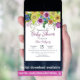 Den här inbjudan till babyvisningsprogrammet är en harmonisk blandning av elegans och viskhet, designad för varmt inbjudan gäster att fira det kommande ankomsten av ett nytt liv. Inbjudan är försedd med en färgfull uppsättning handritade blommor överst, som visar nyanser av gult, blått, lila och grönt. Dessa vibrerande färg symboliserar liv, glädje och en ny färds blomstring. Blommigtens utformning gör naturen skönare och skapar inbjudan mer tilltalande och uppmuntrande. Detaljerna för evenemanget skrivs elegant under blommigtens utformning i olika typsnitt, vilket ger en aning sofistikering och tydlighet.