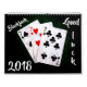 Blackjack, Lycka till! En sorts, rolig, anpassade kalender på 12 sidor. Konstgjord bilder av Blakjack händer kombinationer med 21 poäng. Du kan ändra alla texter och till och med hela bilder. Låt Tur vara med dig!
