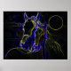Blacklight/Black Light Horses and Full Moon on Background - Two Horses and Måne Poster Print - Horses Art Poster - Animal Art Printing