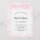 För elegant 21:a födelsedag (eller någon annan ålder). En vit snyggt bakgrund. Dekorerad med rosa faux glitter, gnistor. Anpassa och lägg till information om namn, ålder och party. Namn är skrivet med ett handskript i stil
