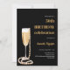 En modern, snyggt och glamorös inbjudan till en Pearls- och Prosecco-födelsedagsfest (vilken ålder som helst) En svart bakgrund med ett glas, flute med gyllene bubblor och pärlor. Namn är skrivet med ett modernt handskript i stil. Anpassa och lägg till information om party.