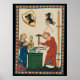 En illustration från det medeltida 1400-talets Codex Manesse-manuskript. Blacksmith förser en hjälm medan hans assistent står i närheten. Underbar gåva till någon som är intresserad av mitten-årens historia och konst.