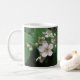 Detta vackra mugg är ett fotografi av en vinranka med svarta druvor täckt av blommor. De vackra blommorna ser vita ut från en avstånd, men om du tittar noga så har petalerna en blek rosa-gångjärn. Utformningen visas på ett vitt mugg, men finns också på en rad andra stilar och färg i muggar.