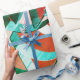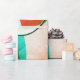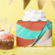 Blått och cyan rand med vissa groover över korallbakgrund.