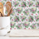 En tropisk design som omfamnar naturens lugna skönhet blandat med en lekfull kant. En blandning av lugnande gröna tropiska blad, inklusive bananblad, palmer, monstera blad och rosa princessa växter, tillsammans med lugnande lila-rosa orkidéblommor och protea blommar, sammanflätade med olika andra bladverk. Lägger till ett element av kul, en grå "messy dot" eller "dalmatian dot" bakgrund ger designen en lekfull touch. Denna mångsidiga design ger en känsla av tropiskt paradis till alla miljöer eller speciella tillfällen. Kolla in alla samordnade delar också! Cute Trendy Dot Floral Watercolor Tropical Pattern keramisk platta