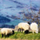 En vacker digital oljemålning av får, några av de hårt arbetande jordbruksflickorna. Wales UK.
