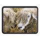 Två vackra Cotswold-får fångade fotografiskt i ett roligt och humoristiskt ögonblick och pratade med varandra. Cotswold-får kommer från Cotsweps i England och föds upp för ylle och kött. De har ett långt ull med en nästan gyllene ton.
