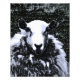 En digital konstdesign av ett får som skyddar sig från snö. Wales.