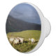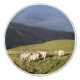 En fotografisk design av walesiska bergsfår som betar på den soliga bergssluttningen precis när regnet är på väg att börja.