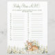 Blad med baby shower spel söta jordgubbar.