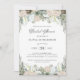 Dessa vattenfärgsfärger i inbjudningskort för möhippa har gott om löv av grönt med blommor i mjuka nyanser av grönt, kräm, sage och brun på vit bakgrund.