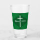 Den här vackra glastumlaren i grönt har en vit kor och anpassade text.