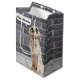 Golden-hämtaren bär en rolig ansikte-mask på grått-tegelvägg och trä golv. Meddelandet i tal-bubblan kan redigeras.