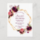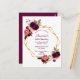 På framsidan: En inbjudan till en elegant på 40-årsdagen party. En chic vit bakgrund med faux guld geometric ram. Dekorerad med mörk burgundi och rosa vattenfärgade blommor, fjädrar från ro och boho stil. Mallar för uppgifter om namn och party. Namn är skrivet med ett handskript stil, burgundy färgad brev. Bakåt: färgadens bakgrund.