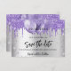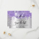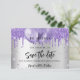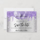 En faux silver tittar bakgrund som dekorerats med violett, lavender färgad faux glitter och ballonger. Anpassa och lägg till datum och namn/ålder. Texten: Spara datumet skrivs med ett stort trendig-handskript i stil.