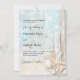 En rustisk bröllopsinbjudan till stranden med drivträ, årskel och sand. Blå och beige färg. Anpassa och lägg till namn och information.