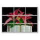 Red jul poinsettia med öppen Heliga Bible in snowy window ram with snöflingor