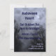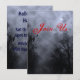 En inbjudan till anpassningsbar med grungy brev på ett skådespel Halloween himlar med blått mistigt träd längs en mörk hemsökt väg, gotiska ravens och ett grumligt måne med grungigt brev i rött och blått. Klicka på Anpassa om du vill ändra typsnitt, färg, storlek och mer, även spara din design för senare."