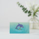 En blå delfin med dekorativa doodlar på hans hud, som hoppar över flerfärgade regnbåge vatten. Ställ in på en övertoningsbakgrund för akvatiska gröntar. Lämpligt för företag och yrken i vatten.