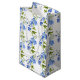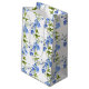 Söt blå grönt och vit blommigt repeterar mönstrad bröllopsväska. Perfekt för att ha presenterat en mycket speciell liten gåva till nygifta eller för bröllopsfavörer. Fin delphinium spike vattenfärgsmålning. Perfekt för trädgård, sommardelfinum eller blåblomma bröllop. Sarah Trett målade i vattenfärg och designade på www.mylittleedenweddings.com