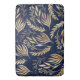 Elegant och enkel guld-löv, portfölj med handritad marinblått illustration, fylld med ett vackert fall grey mönster, vegetation med faux guld foil lövs på mörk blått färg, marinblå bakgrund. Naturhandmålning av botaniska blommigtar, contemporaryns utformning.