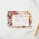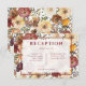 Den här eleganten har en enkel design med en bakgrund av grädde, gult, lera och marsala ro och blommor. Texten visas på en mjuk vit, genomskinlig bakgrund för att visa av den bakomliggande designen. Kortet är en del av Bröllop-kortssamlingen för Fall Watercolor Bouquets bröllop skapat av Farmhouse Press.