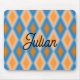 Lägg till ditt namn på den här övertoningsformen och mönster-orangen med blå diamantformer.