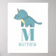 Blådinosaurier. Pojke. Djurmonogram. Nursery Poster