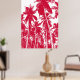 Bladmönster. Tropiska palmer. Djärv och imponerande grafisk abstrakt palmer posteriserad design. Röd och vit.