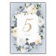 Blådödande botanisk dammig blå blommigt bröllop bordsnummer