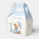 1:a födelsedag med små gable-boxar med söt nalle, ballonger, cupkaka, stort nummer och grön. Tur design för första eller andra födelsedagen för en liten pojke i ljusblå och beige. Du kan välja mellan tre storlekar av dessa böjliga förinställningsrutor. Anpassa enkelt alla texter till antalet födelsedagar. - Kate Eden Art