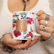 Luxuriöst glamoröst kaffe av professionell personlig för företag mugg med mönster med stor färgad vattenfärgad korallrött burgundi och peonier och blommor av rosa med djuphavsblå bladbuketter och två glandiga beige beige än kopparmetalliska etiketter. Idealisk för skönhetssalon | konstnärer studio | Värmestylist | Stylist mode | Dekorator för insida | Konstruktör | Arkitekt | mode boutiques ägare | chef dam. — Val av Perfekt för en snyggts sofistikerade företagsbild. — Anpassa den med ditt företag namn / ditt namn i fyrkanterna på lämnat och höger!