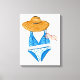Blötlägg upp Sol II med Blanckslate. En blå baddräkt med två biet med en bred halmhatt och solglasögon för tillbehör. | 140678GG